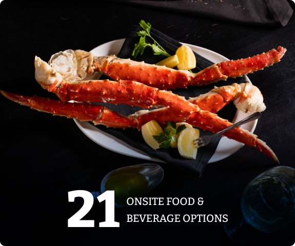 Twenty-one unique dining experiences, including a steakhouse, modern Mexican, and authentic Italian cuisine.